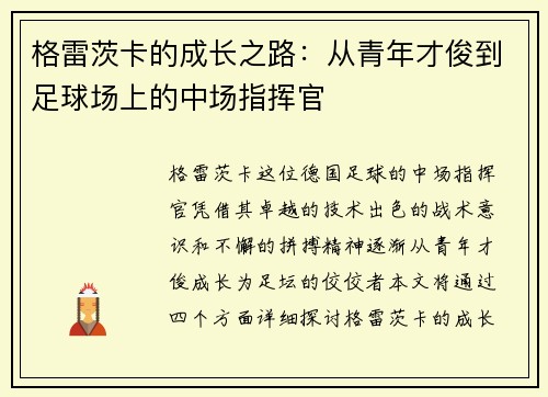 格雷茨卡的成长之路:从青年才俊到足球场上的中场指挥官